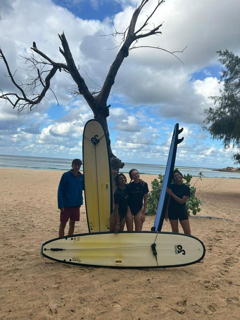 Although Saturday’s forecast of rough seas and rain sadly decided to be accurate for once, swimming teaching, diving and lounging in the sun were replaced with card games, dissertation research and a fabulous murder mystery night orchestrated by Ark, and accompanied by popcorn and mac and cheese. A visit to Tofo was greatly received on Sunday; we wandered around the town’s markets, purchasing postcards and beautiful wax paintings before our fab surf lessons (or delicious cappuccino for Sophie)! The day continued getting better as we visited the eagerly anticipated Mexican restaurant (‘Tacos n Frends’ should you ever want to visit which you must) and it certainly did not disappoint; our stomachs were filled with burritos, quesadillas, churros and tequila before we headed to a gorgeous little bar to watch the sunset. Ark’s birthday gave us the wonderful excuse to bake and eat cake, so the day ended with some pretty happy people with bellies full of chocolate cake!