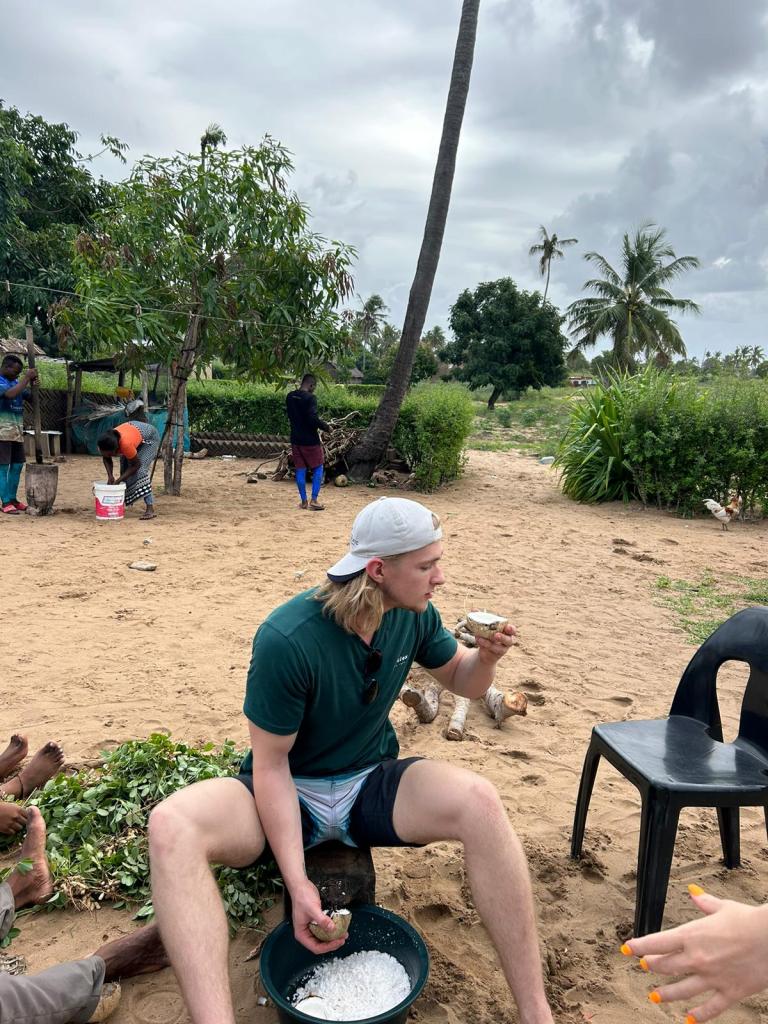 Week 1 of our LTO expedition was a jam packed one. We started the week off in mellow fashion, completing all of our training, learning about the local area and waiting out the awful British weather that Will brought with him. The sun made an appearance on Wednesday, allowing Harriet to complete her PADI open water diver qualification. After a quick turn around we headed on the cultural tour, where Pascoal graciously invited us into his home for dinner. Pascoal and his wife Christina taught us how to prepare and make matapa, starting by harvesting the ingredients and making friends with a chameleon in the process. Once we had collected everything we needed, we got to work on making the dish and all sat down together to enjoy.